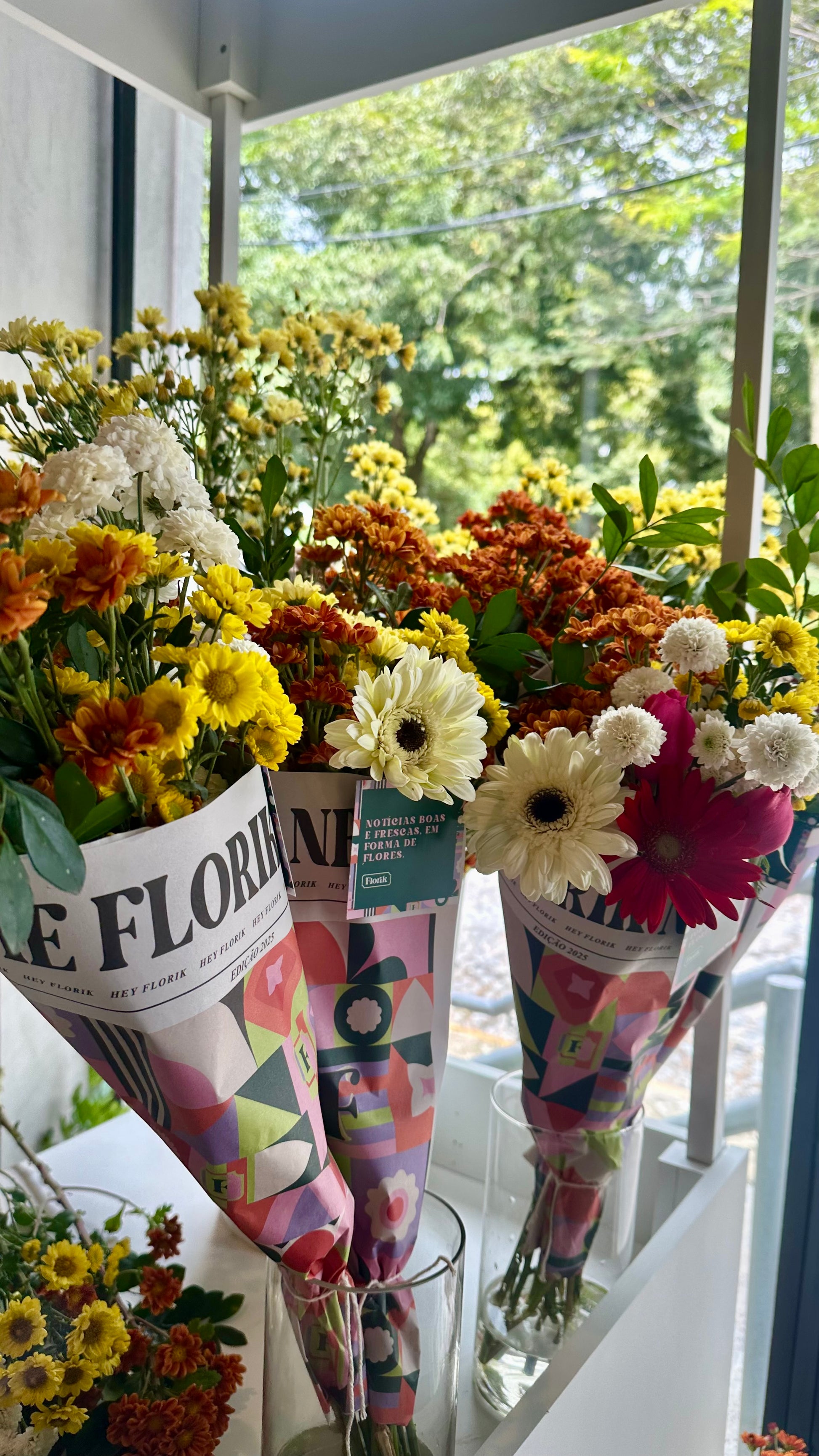 ATENÇÃO: o mix de flores e folhagens é selecionado pela nossa curaria , dentre as espécies mais frescas da estação. Por isso não temos um modelo padrão, as imagens são apenas ilustrativas, uma referência de proporção e estilo, logotipo como flores, folhagens e cores do arranjo estão sujeitos a variações. Na Florik cada notícia boa em forma de flores é única, feita exclusivamente para você.