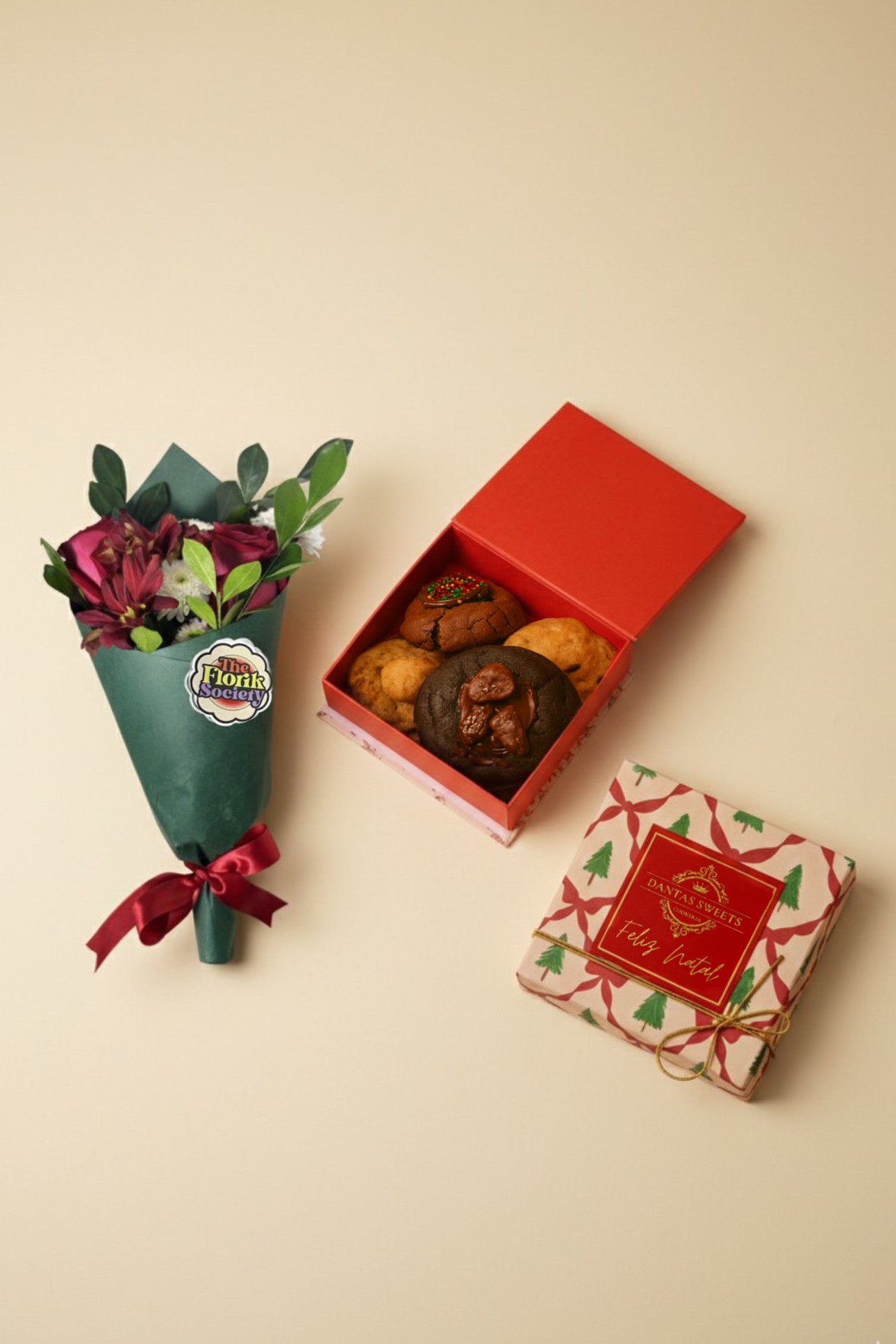 1 caixa natalina com 4 cookies (consultar a disponibilidade dos sabores)